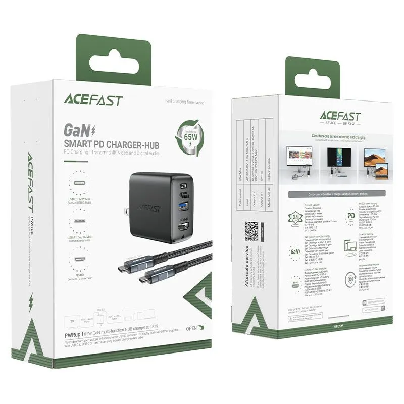 Acefast A19 GaN PD65W Charger Adapter US (With Cable)