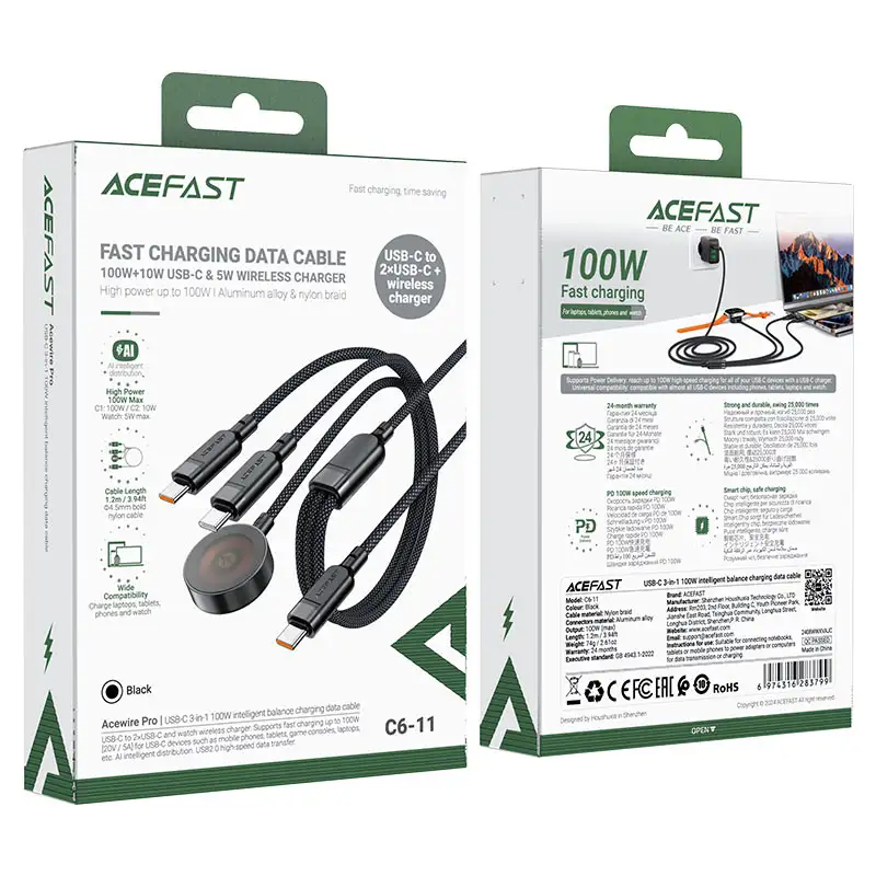 Buy ACEFAST C6-11 3-in-1 100W Charging Data Cable with Wireless Charger Online at the Best Price in Bangladesh at GadgetBreeze.