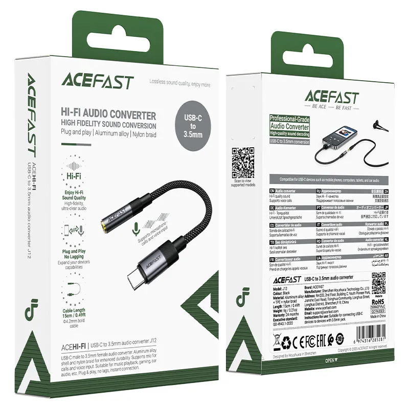 - The ACEFAST J12 Audio Converter is a high-quality solution for users who need a reliable and clear connection between USB-C and 3.5mm audio devices. With its digital-to-analog conversion capability, this adapter ensures crisp, distortion-free sound that preserves the original audio quality. Whether you’re listening to music, watching videos, or making calls, the ACEFAST J12 delivers an immersive audio experience every time.