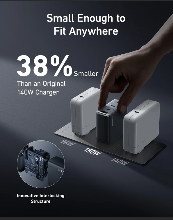 • Compact Yet Powerful: 38% smaller than an Apple 140W charger—but with even more power.