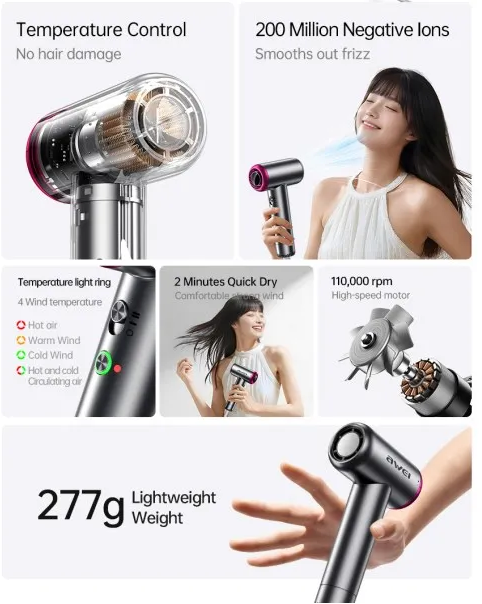 Gears: smart chip for stable 2 speeds/ safe 4 temperatures