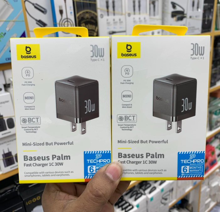 Experience the perfect blend of portability and performance with the Baseus Palm Series 30W PD Fast Charger. Designed for speed and convenience, this compact USB-C wall charger delivers up to 30W of fast charging power, making it ideal for powering up smartphones, tablets, and even some laptops.
