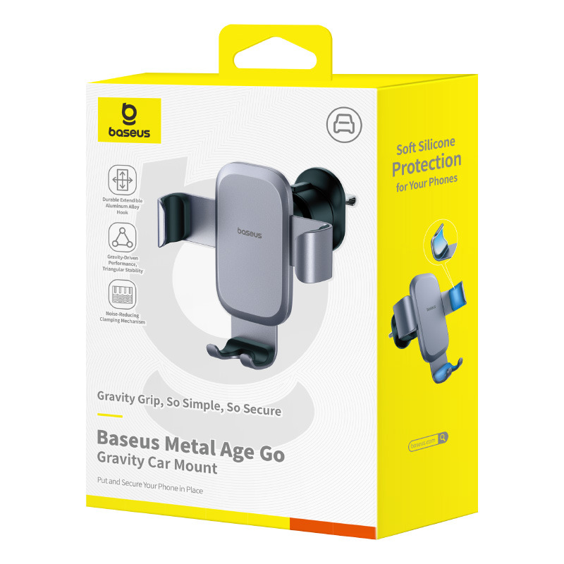 - The Baseus Metal Age II Gravity CarMount (Air Outlet Version) is the perfect solution for drivers who demand both reliability and style. Specifically designed for round air vents, this upgraded holder features a mechanical mounting system that delivers unmatched stability and a snug fit. Whether you’re navigating city streets or bumpy highways, your phone stays locked in place without rattling or slipping.