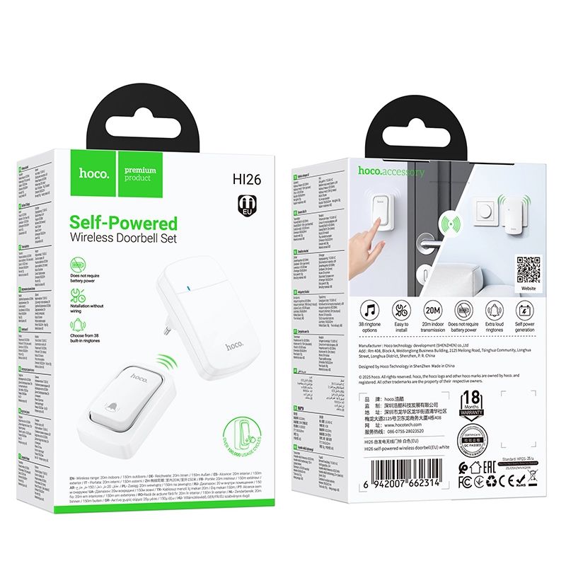 Hoco HI26 Self-Powered Wireless Doorbell EU Plug