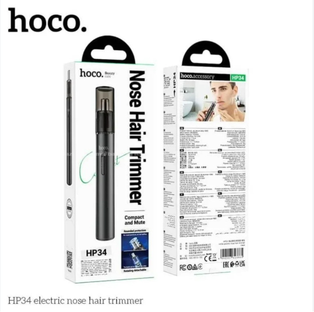 - The Hoco HP34 is designed for men who value personal grooming and convenience. Equipped with dual-edge stainless steel blades, this trimmer provides precise, painless trimming of nose and ear hair. The rust-resistant blades ensure long-lasting performance, maintaining sharpness over time for a clean and professional finish.
