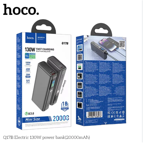 The Hoco Q17B Electric130W Power Bank is a powerful and efficient charging solution designed for users who need fast and reliable power on the go. With its 20000mAh capacity, it provides multiple recharges for smartphones, tablets, and even laptops.
