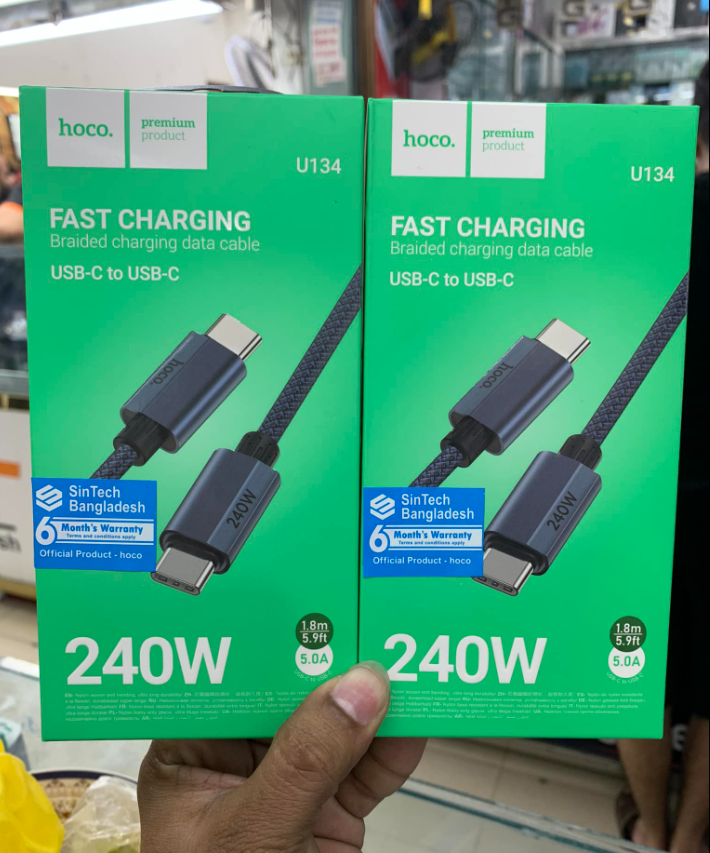 Hoco U134 Type C to Type C 240W 5A Braided Fast Charging Data Cable -1.8m