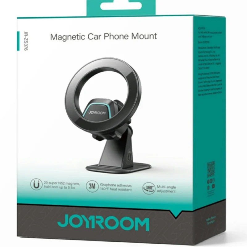 - The JOYROOM JR-ZS376 Magnetic Car Phone Mount is a premium solution for keeping your smartphone secure and accessible while driving. Designed with extra-strong magnetic hold, it features 20 built-in magnets and an included metal ring, ensuring that even the largest smartphones stay firmly in place, no matter the road conditions.