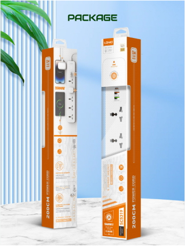 LDNIO SC5319 Multi Socket Extension Lead with 5 AC 3 USB Power Socket Plug Extender 2M