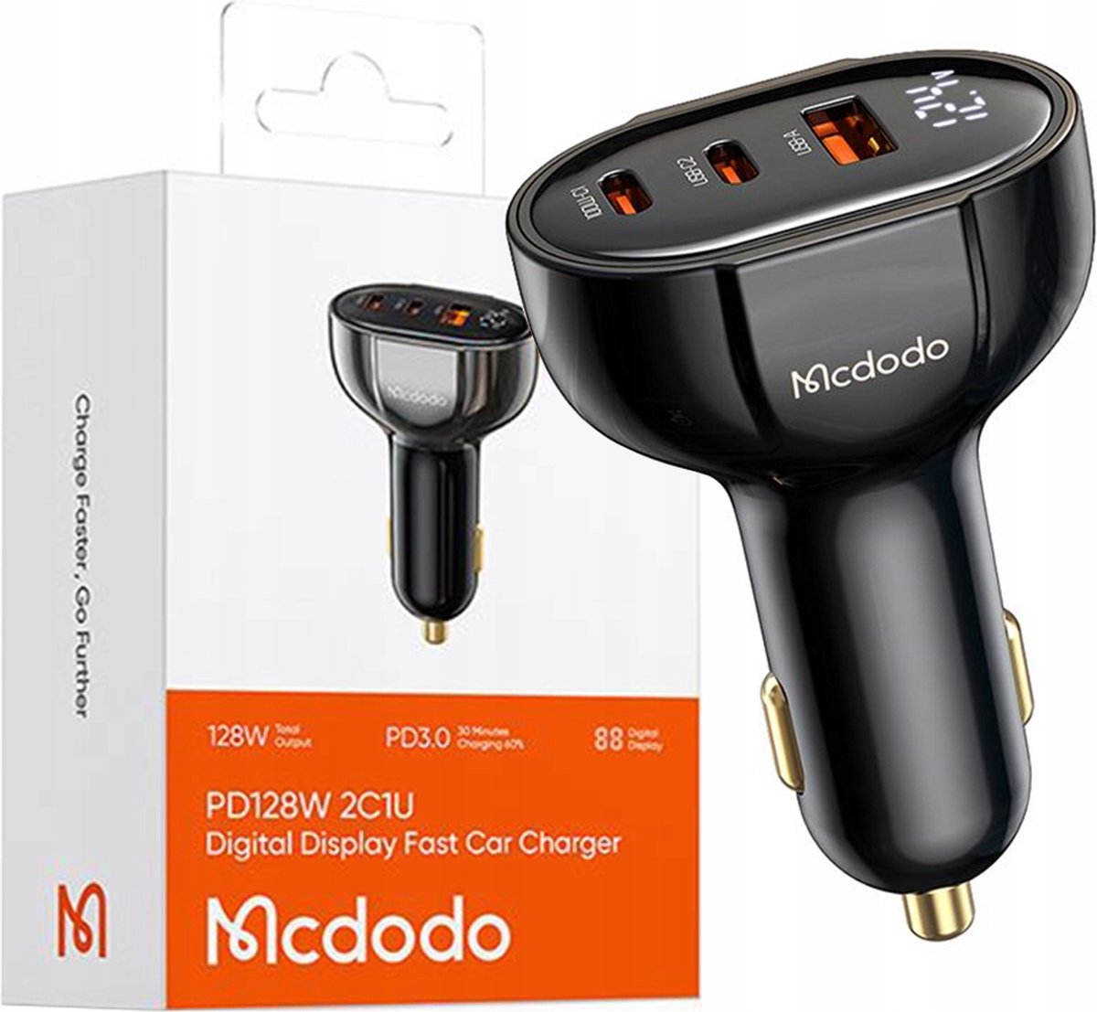 - In addition to its powerful charging capabilities and digital display, the Mcdodo Prism Series 128w Pd Dual Usb-C + Usb-A Digital Display Car Charger is also built to last. It is made from high-quality materials and features a sleek and stylish design that will complement any car interior. Whether you are on a long road trip or just running errands around town, this car charger is the perfect accessory to keep your devices charged and ready to go.