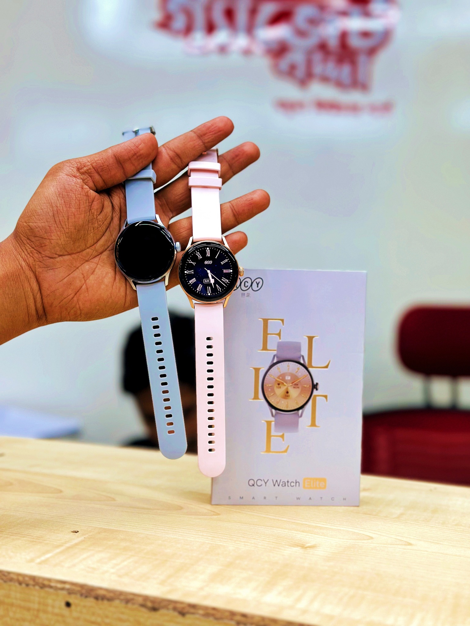 - Stay stylish and connected with the QCY Elite Ladies Smartwatch, featuring a stunning 1.19-inch AMOLED display. Designed for modern women, this smartwatch combines elegant design with advanced Bluetooth calling, allowing you to make and receive calls directly from your wrist. Track your health with multiple fitness modes, monitor your heart rate and sleep patterns, and stay on top of your schedule with smart notifications.