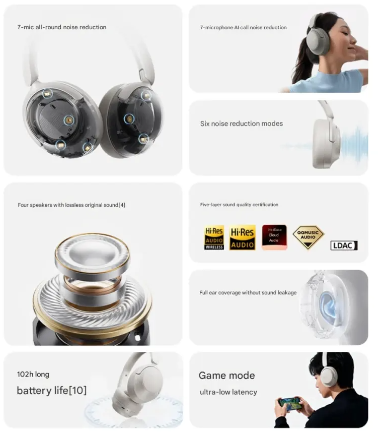 - The QCY H3S is the latest 2025 flagship overhead headphone designed to redefine your audio experience. With its dual-driver setup and advanced Hybrid Active Noise Cancellation (-56dB ANC), the H3S ensures crystal-clear sound quality by blocking out unwanted background noise. Whether you’re a gamer seeking ultra-low latency or an audiophile craving immersive sound, this headphone delivers on every front.