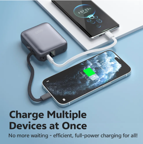 - Dual output ports (USB-A and USB-C) for charging two devices simultaneously