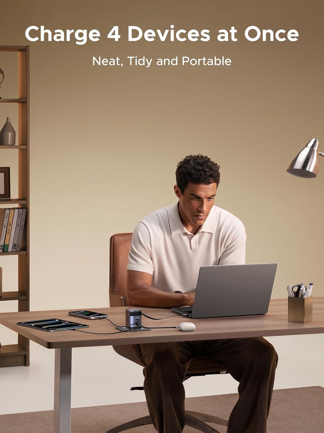 - Equipped with 2× USB-C ports and 1× USB-A port, this charger supports simultaneous charging of up to four devices with smart power allocation. Whether you’re charging a laptop, smartphone, tablet, or accessories, it efficiently distributes power without overheating or performance loss.