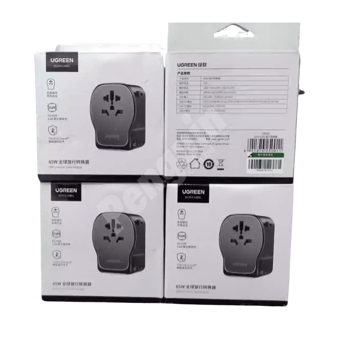 - The UGREEN S550 65W Universal TravelAdapter price in BD offers excellent value, considering its premium safety and performance features. With a built-in 3-pin to 3-pin Ground Connection, it provides a safer charging experience and prevents electric shocks. Additionally, the 10A fuse ensures reliable protection against overcurrent, keeping your devices safe in any environment.