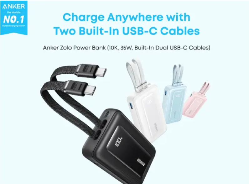 - Stay fully powered wherever you go with the Anker Zolo A1680H12, the ideal portable companion for all your charging needs. Designed for modern users, this 10000mAh 35W power bank features built-in dual USB-C cables, so you can forget about carrying extra wires. Whether you’re on the road, at work, or in class, this compact powerhouse has your back.