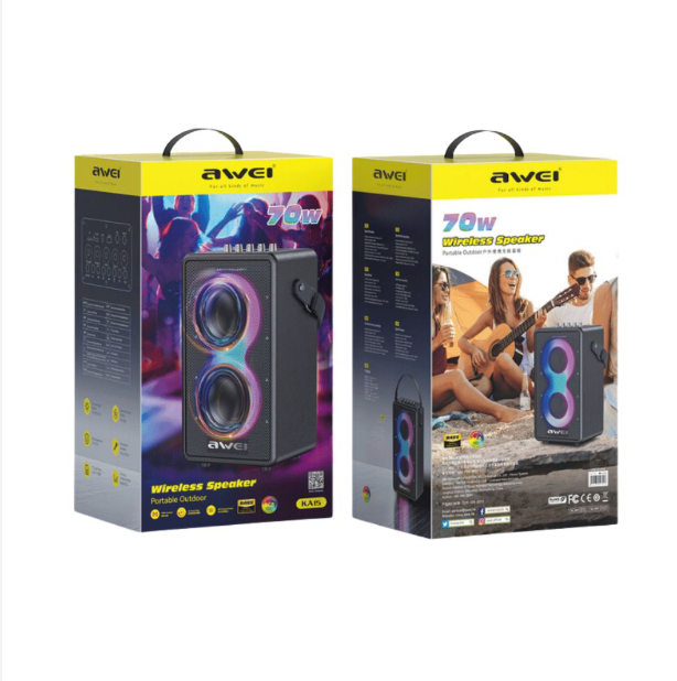 The AWEI KA15 is a high-performance 70W outdoor Bluetooth speaker, delivering rich, immersive audio with deep bass and clear highs. Whether you’re hosting a party, camping, or enjoying music outdoors, this speaker ensures powerful, high-quality sound in any environment.