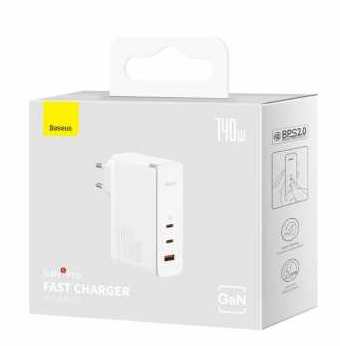 Baseus 140W GaN5 Pro Super Fast Charger PD3.1 QC4.0 with 3 Output for Apple iPhone, iPad, Samsung Galaxy, Tablets, Oppo, Huawei, Xiaomi, Asus ROG - White Details