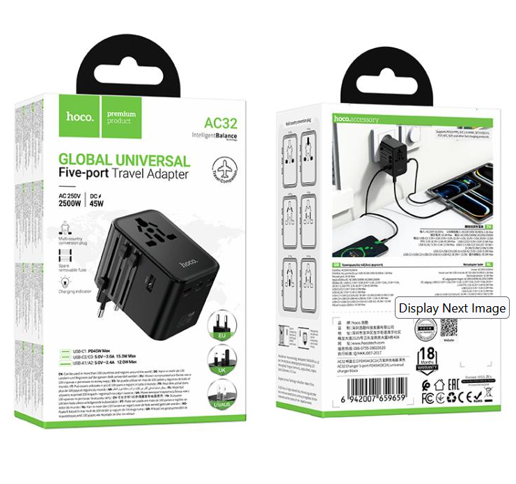 Hoco AC32 USB-C PD 45W Global Universal Travel Adapter