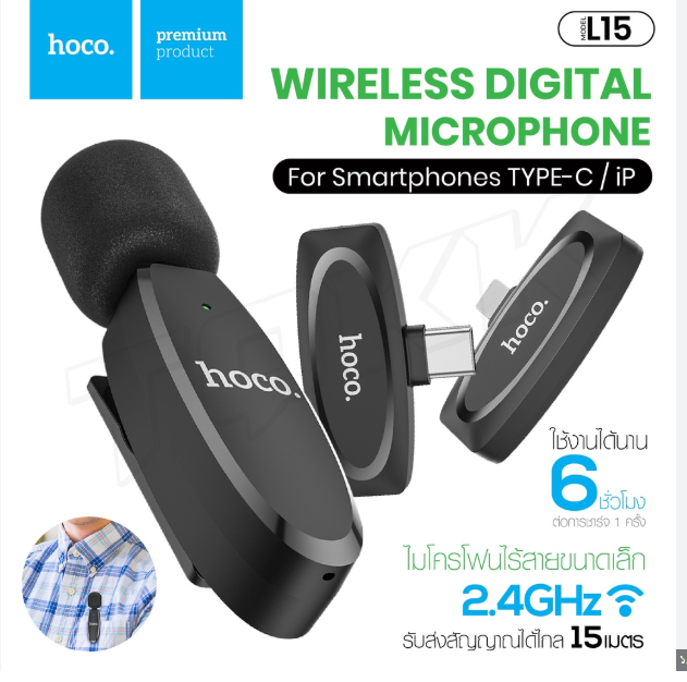 Buy Hoco L15 Type C Wireless Digital Microphone for online in Bangladesh from Cellsii.com. The Hoco L15 Type-C Wireless Lavalier Digital Microphone is a great choice for anyone who wants to improve the audio quality of their videos or recordings. This microphone is small, lightweight, and easy to use, making it perfect for vloggers, YouTubers, podcasters, and anyone else who wants to capture clear and crisp audio.