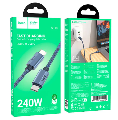 Hoco U134 240W 5A PD Charging Data Cable – 1.8m