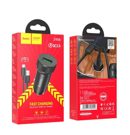Hoco Z49A Level Single Port 18W Car Charger With Type-C Cable