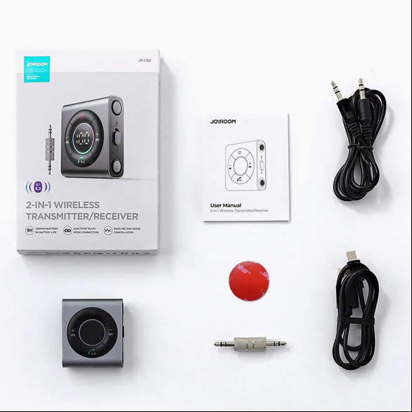 - Included in the package are the Bluetooth transmitter receiver, charging cable, audio cables, metal plate, user manual, and warranty card. With comprehensive customer support and a robust warranty policy, Joyroom ensures customer satisfaction and assistance with any product-related concerns.