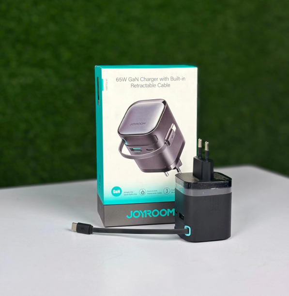 JOYROOM JR-TCL02 GaN 65W Charger with Retractable Cable is a high-performance charging solution designed for fast and efficient power delivery. Equipped with GaN (Gallium Nitride) technology, this charger offers higher efficiency, reduced heat generation, and a more compact design compared to traditional chargers. The retractable cable adds convenience by preventing tangled wires, making it ideal for travel and everyday use. With an EU plug and a wide input range of 100-240V, it is compatible with various power sources worldwide. The total output of 65W ensures fast charging for multiple devices, including smartphones, tablets, and even laptops that support USB-C Power Delivery (PD). Built from fireproof PC material, the JOYROOM JR-TCL02 prioritizes safety while maintaining a sleek black design. Whether you're at home, in the office, or traveling, this charger provides reliable, efficient, and tangle-free charging. Order now from Tech Land BD and upgrade your charging experience with the JOYROOM JR-TCL02!